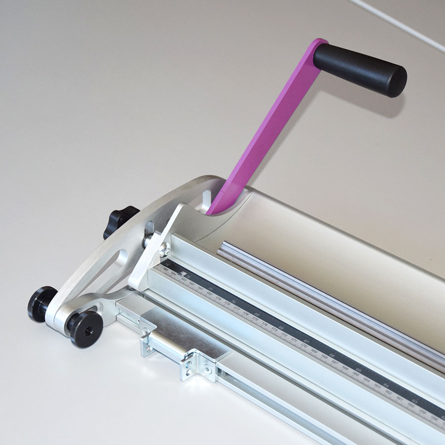 • Both the cutter and the aluminum base are equipped with full length grip strips to aid clamping and protect printed media